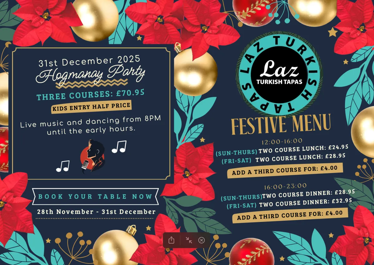 At Laz Turkish Tapas, we believe food is more than a meal — it’s a moment to connect, share, and celebrate. Inspired by the rich flavours of Turkey and the warmth of Mediterranean hospitality, every plate is crafted with passion and care. From smoky grilled dishes to a diverse array of vibrant tapas, we bring you bold flavours and unforgettable bites — all made to be shared. Join us at Laz, and experience Turkish tapas made with heart.